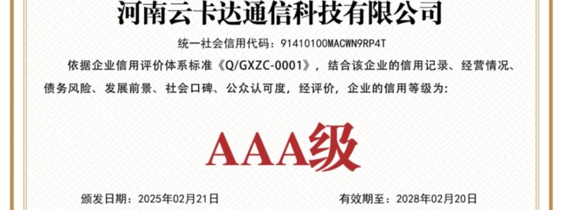 2025年,云卡达通信科技荣膺“中国315诚信商家”称号,标志着其在企业诚信经营、用户隐私保护及服务质量方面的卓越表现获得国家级权威认可。公司始终将客户权益置于首位,严格践行数据安全规范,为企业打造安...